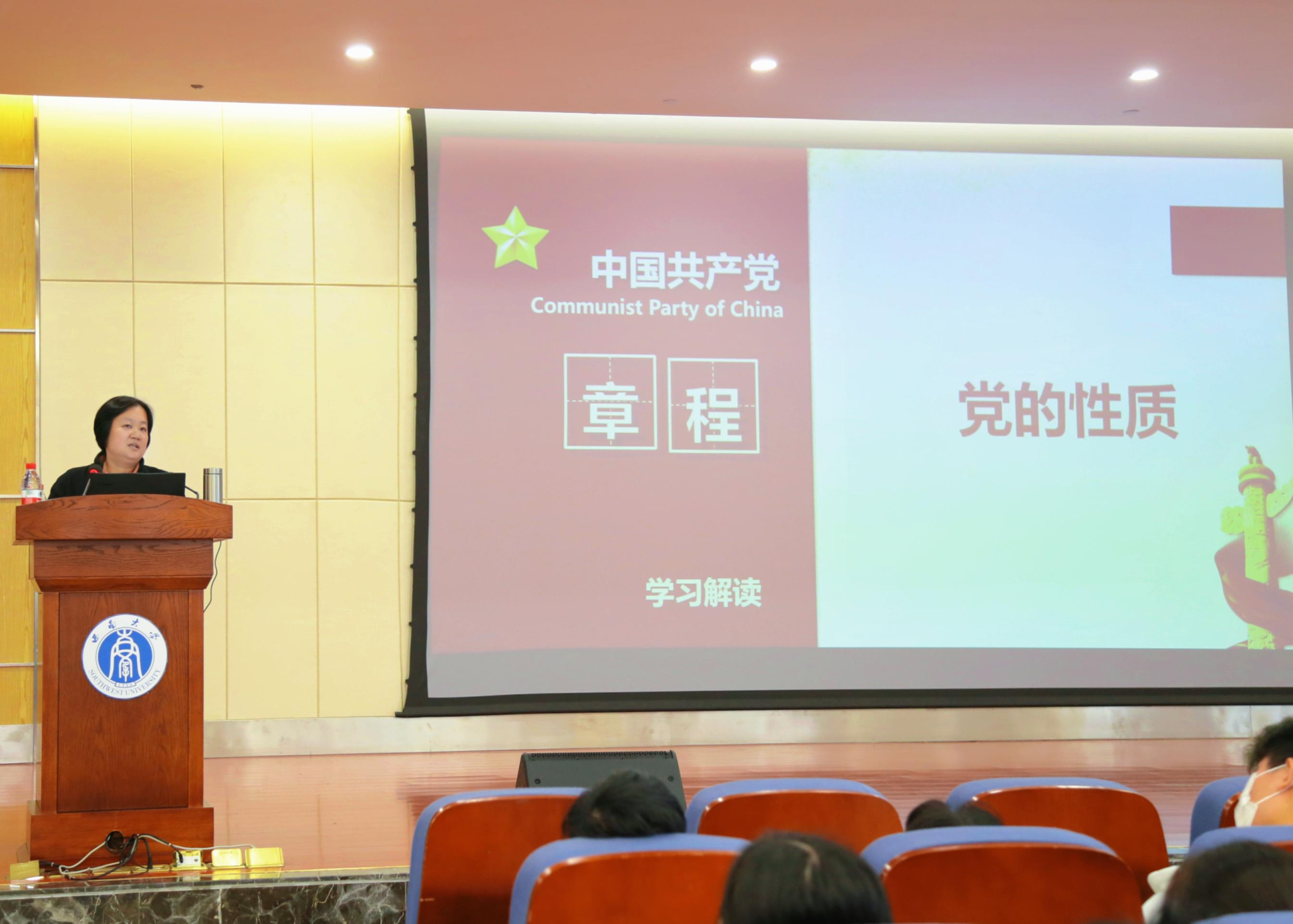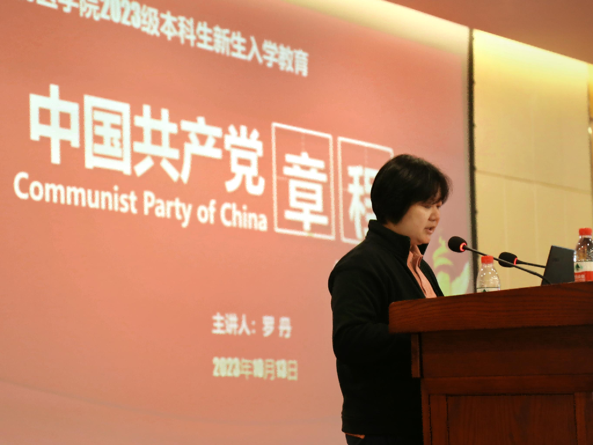 学院党委副书记、纪委书记罗丹带领新生学习了中国共产党章程;围绕“两个先锋队,一个核心,三个代表”深入浅出的解读了党的性质和党的宗旨,讲解了大学生如何做到全心全意为人民服务。她希望在场全体新生要不断增强政治思想素质,践行全心全意为人民服务的根本宗旨,全面提高自身综合素养和专业技能,做社会主义事业的合格建设者和接班人。