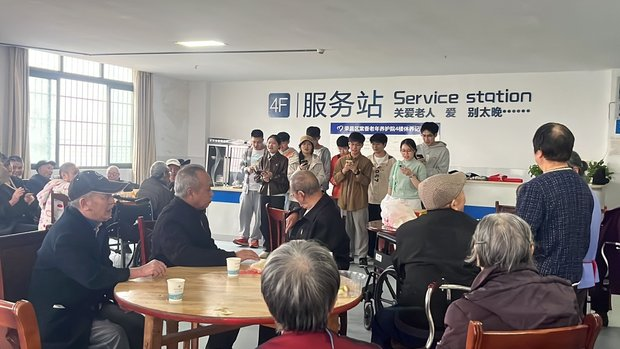 活动中,党员同志为老人们送上了新鲜水果和牛奶等慰问品,随后与老人们一同剪纸。在这些温馨的互动中,同志们与老人亲切交谈,热情的氛围感染着在场的每个人。时间在欢乐的聊天中慢慢流逝。临别之际,一位老人为大家唱起了毛泽东语录“世界是你们的,也是我们的,但是归根结底是你们的,你们年轻人朝气蓬勃”,热切地表达了对青年人的祝福和期望。