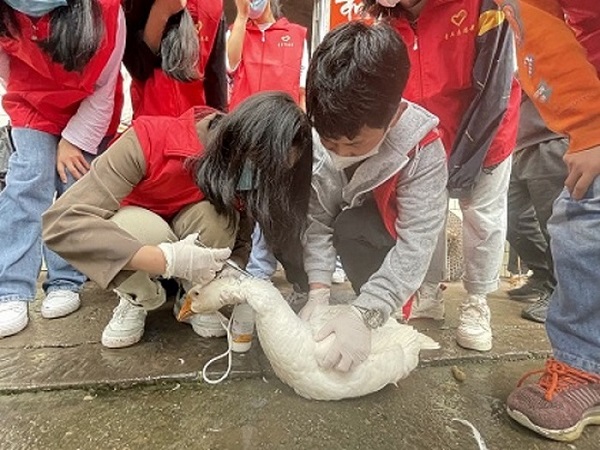 参与实践活动,弘扬劳动精神。在学院黄书记和实践指导老师的带领下,同学们来到了重庆市荣昌区直升镇。同学们为农民养殖户清理杂草,消毒圈舍,给鸡、鹅注射疫苗。在活动过程中,天公不作美,下起了蒙蒙细雨,但这丝毫不影响同学们的积极性,全都忘我的投入到活动中,体现了PA视讯集团学子心中“劳动最光荣、劳动最崇高、劳动最伟大、劳动最美丽”的崇高信念。在这个过程中同学们不仅学习了很多专业实操知识,还让每一位同学都清晰的认识到了我们动物医学专业在国家畜牧业及农业发展中的重要地位。每一位动医人都时刻在为祖国的食品安全、动物疫病等方面保驾护航。
