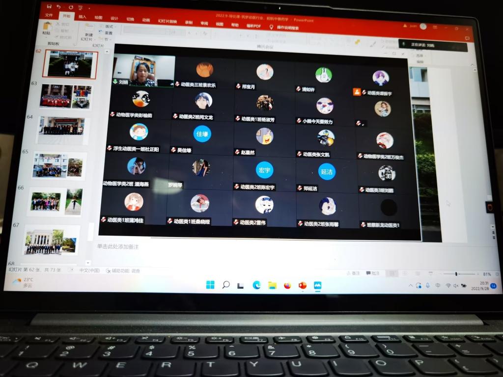 为了进一步深化大一新生对所学专业的认识,掌握最新行业发展动态。2022年9月28日和10月5日19:00,动物医学类专业开设的《学科导论》课程组邀请了我院中兽医药退休专家刘娟教授、朱兆荣副教授分别为2022级全体动物医学类专业学生做了题为“逐梦动医行业,启航中兽药学”和“从社会变迁看针灸发展方向”的专题报告,报告采用线上与线下结合的方式进行。报告由中兽医学系主任曹立亭副教授主持,学院中兽医学系全体老师、在荣研究生及部分动物医学专业本科生参加了会议。