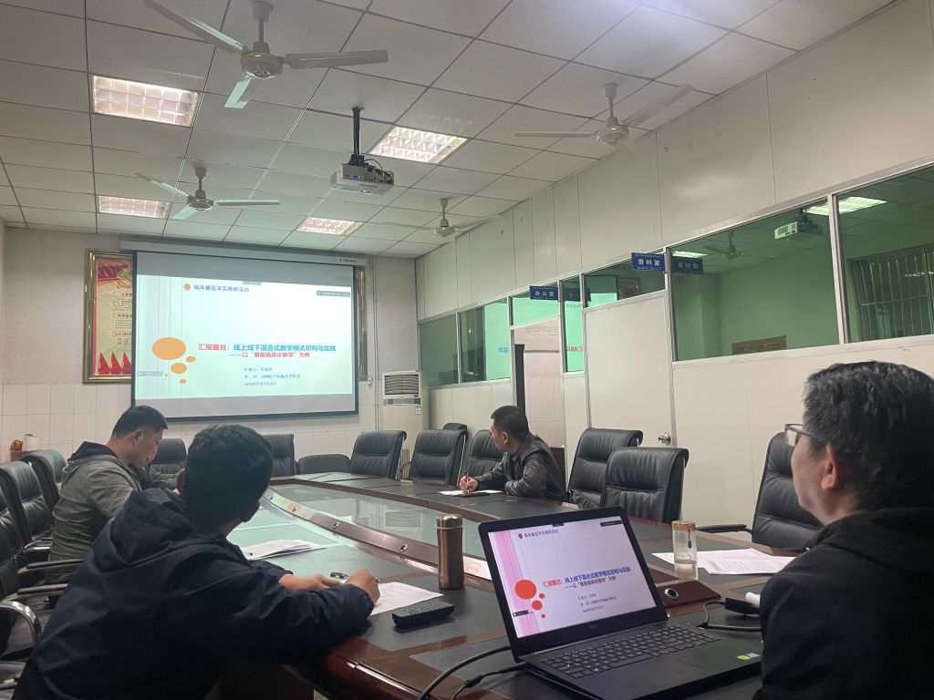 “草长莺飞,杨柳拂堤”。2023年3月22日19点,荣昌校区第三教学楼202会议室内灯火通明、气氛热烈,动医学院临床兽医系以“云上云下”方式正热情高涨地开展着一场以“创新教学方法、夯实育人质量”为主题的生动的教学观摩、教学研讨活动。“云上”教师倾情展示、“云下”教师倾心交流。为探索兽医临床教学的新方法、新范式,老师们专注、冥思,交流踊跃、出谋献策,亦然忘却了春夜淡月的笼莎、春风拂过的曼妙。