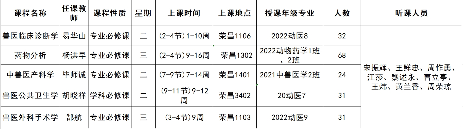 学院每位教师都应该走进优质课堂进行学习,学习优质课程先进理念和先进教育教学方法,提升教书育人水平,每位教师需听课看课2个学时,并将附件1《西南大学课堂教学质量评价表》11月20日之前提交到学院教学办公室存档。各个系组织研讨,重点内容是如何推进专业建设,进一步完善学院动物医学类专业人才培养方案。