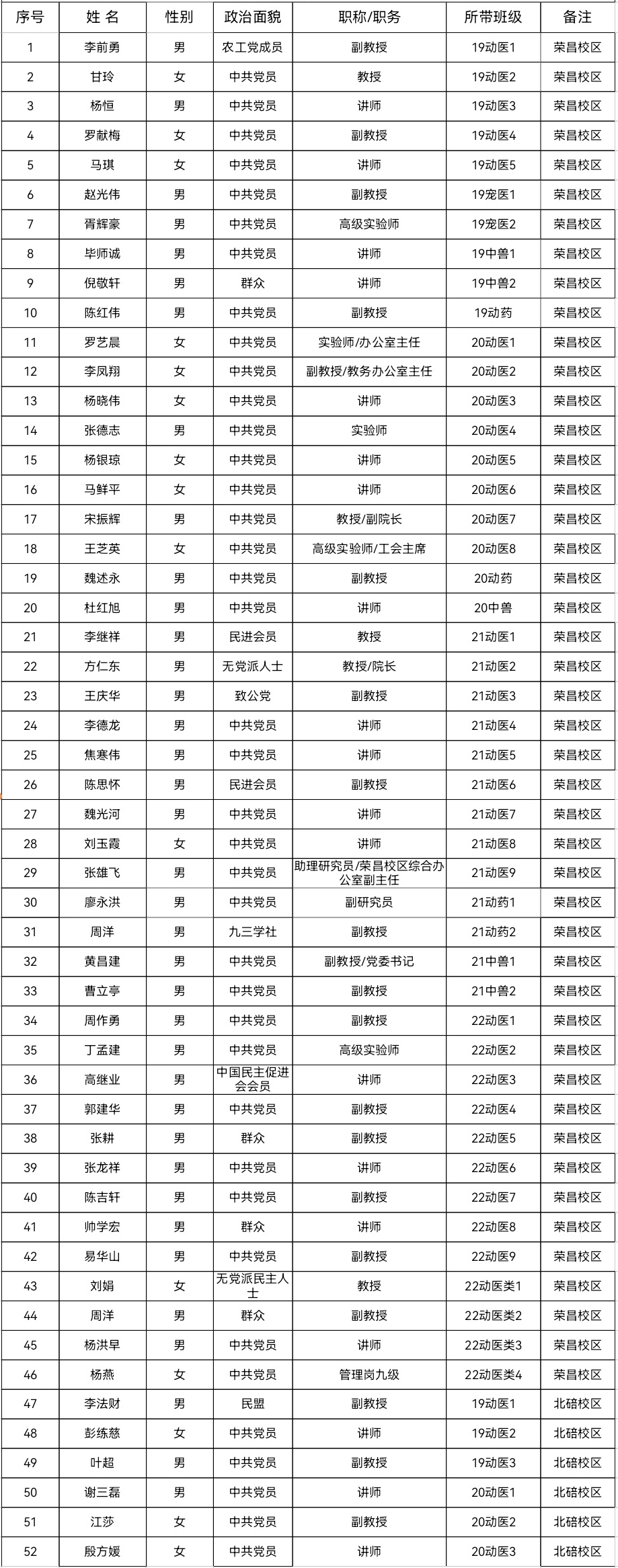 2022-2023学年度本科生班主任基本情况表