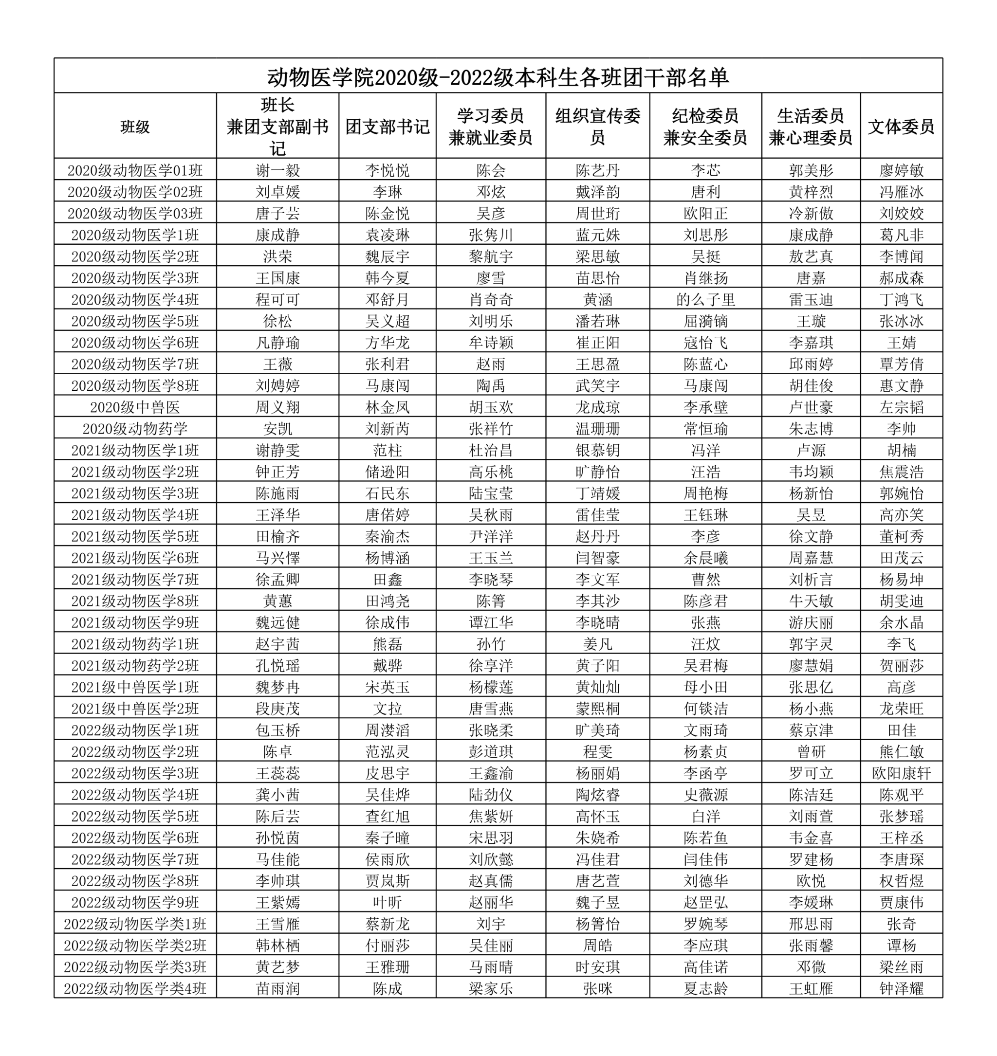 PA视讯集团2020级-2022级本科生各班团干部名单