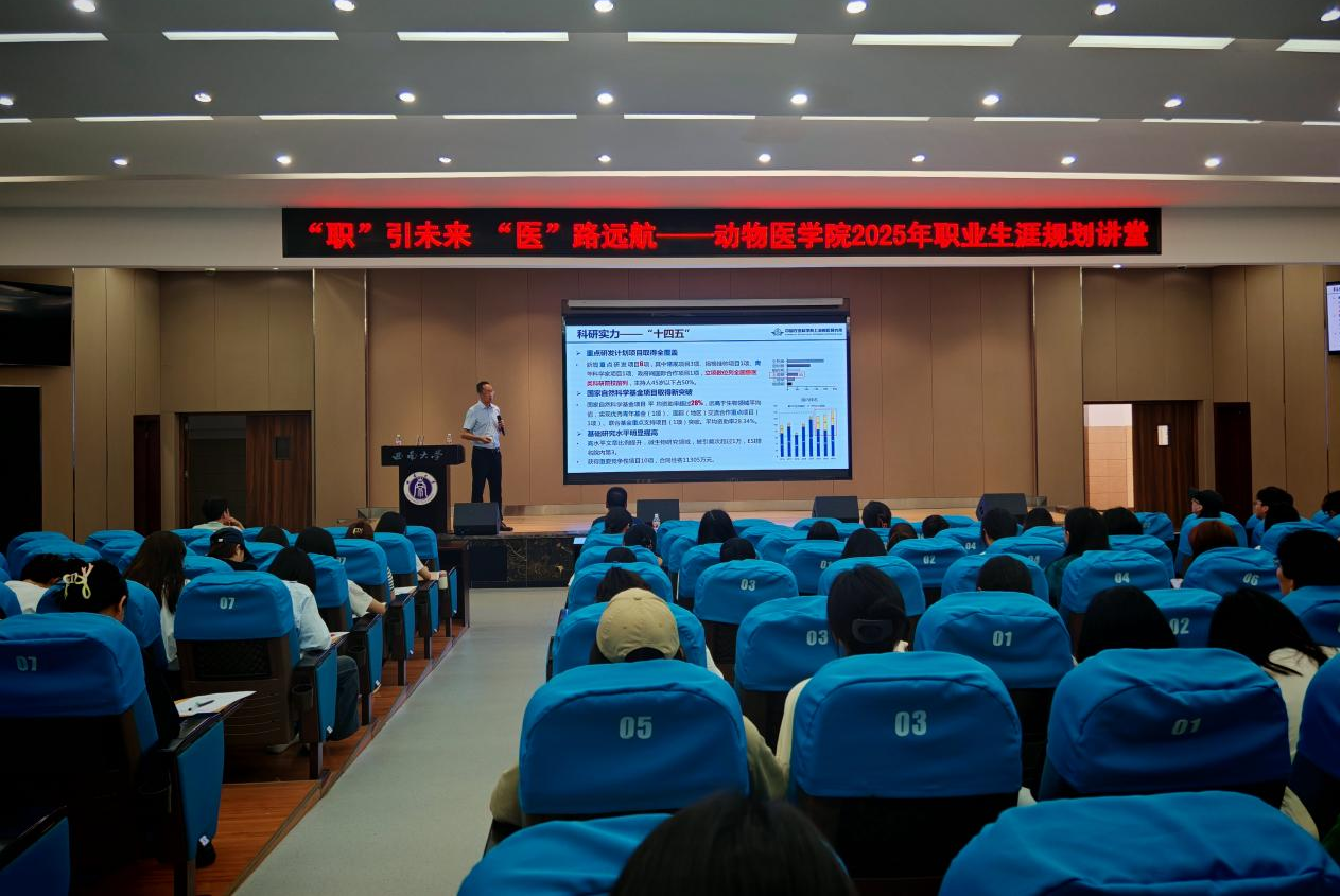 2025年5月19日上午10时,为拓宽学生视野,增强就业与考研竞争力,PA视讯集团在荣昌校区2211报告厅成功举办“职”引未来 “医”路远航”讲堂。本次活动特邀上海兽医研究所科研管理处处长姜一峰博士担任主讲嘉宾,学院两百余名师生积极参与,讲座由PA视讯集团副院长宋振辉主持。