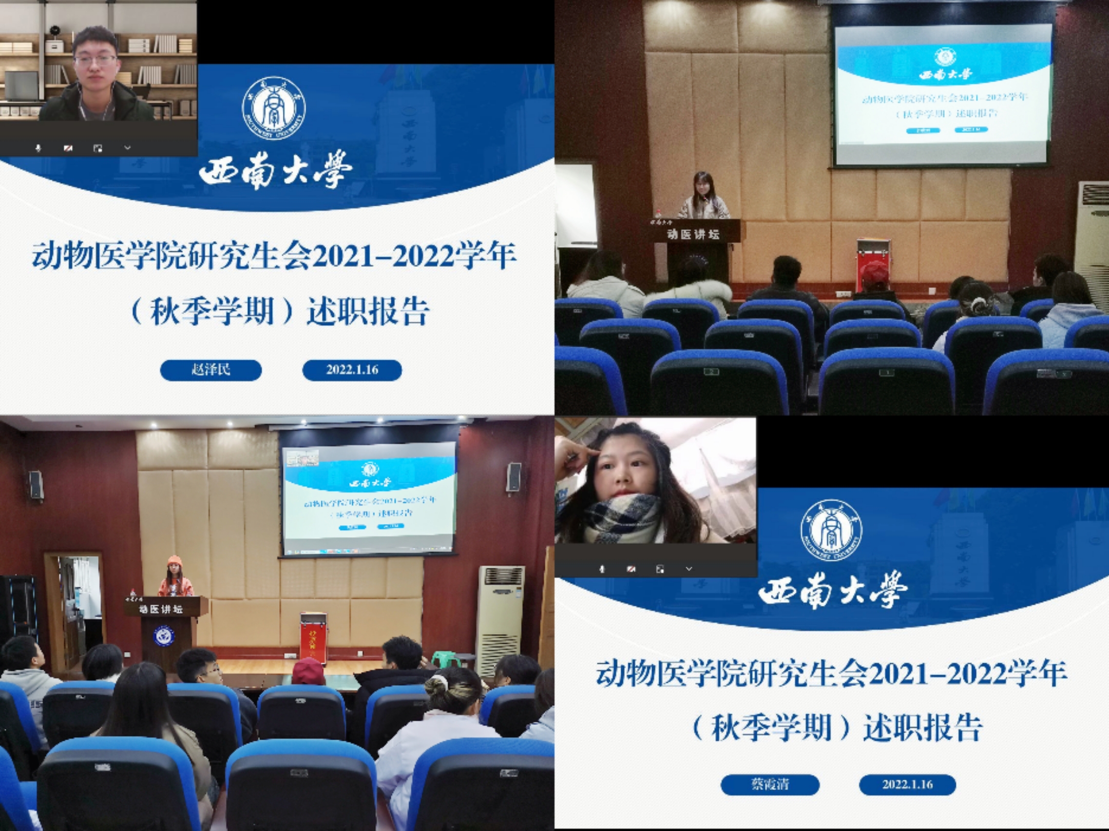 为深入贯彻落实党的十九届六中全会精神,持续深化研究生会组织改革,全面落实《关于推动高校学生会(研究生会)深化改革的若干意见》和《关于高校学生会(研究生会)述职评议会的工作指引(试行)》文件精神,进一步规范研究生会述职评议工作,认真总结工作经验,接受广泛监督,2022年1月16日下午,PA视讯集团研究生会2021-2022学年(秋季学期)述职评议会以线上线下结合方式于荣昌3110报告厅顺利召开,PA视讯集团研究生辅导员李林园老师出席会议,植物保护学院主席团代表李明霞同学、普通研究生代表以及院研会成员参会,会议由综合事务部负责人何政科主持。