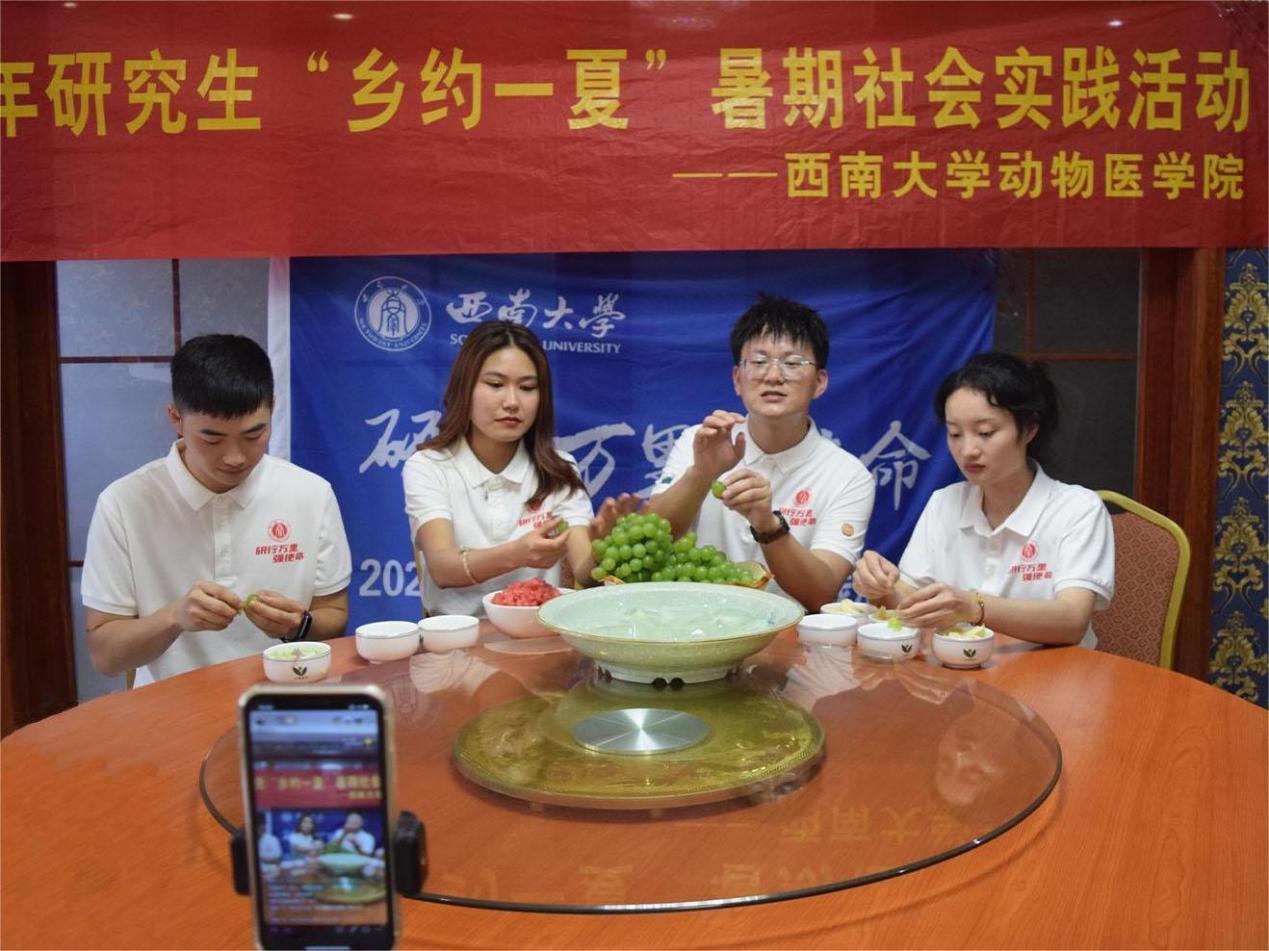 为深入学习宣传贯彻习近平新时代中国特色社会主义思想,贯彻落实习近平总书记关于青年工作的重要思想,引导和帮助广大青年学生上好与现实相结合的“大思政课”,在社会课堂中受教育、长才干、作贡献,努力成为担当民族复兴大任的时代新人,以实际行动迎接党的二十大胜利召开,近日,我院组织13名研究生作为代表赴重庆市长寿区洪湖镇称沱村,开展以“研学万里强使命,助力乡村长寿行”为主题的暑期社会实践活动,就洪湖镇称沱村产业振兴落地现状展开调研,运用专业知识解决实际问题,并帮助当地开展乡村旅游宣传及农产品推介活动。