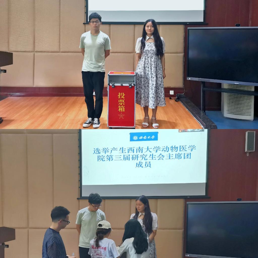 会议选举产生了新一届院研究生会主席团成员。学院党委副书记黄庆洲老师作总结讲话。他充分肯定了第二届研究生会在过去一年来取得的工作成就,并对新一届研会主席团成员提出了殷切希望 :紧跟前人的脚步,择取上一届研会的工作建议,不断的完善研会的各项制度,争取把PA视讯集团研究生会办得越来越好!