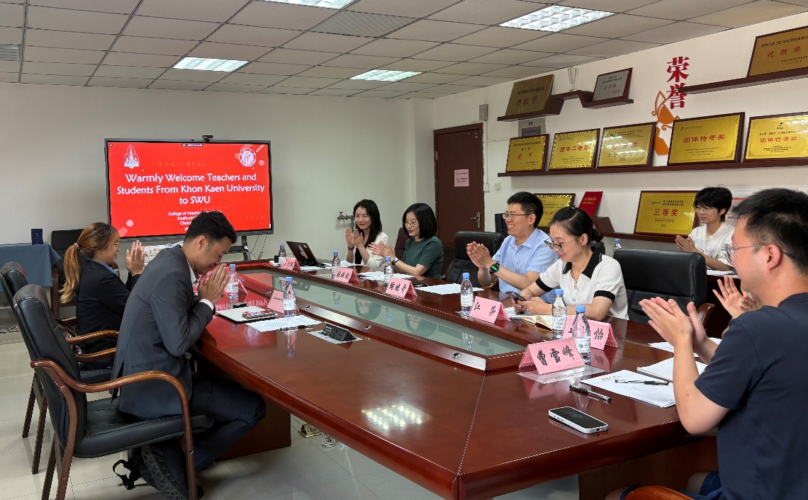 在26日上午,学院举办了欢迎座谈会,孔敬大学动物医院副院长Somphong Hoisang、兽医学院外事秘书Maneekan Janrat、学院副院长陶晓奇、动物医院北碚校区院长江莎、外事秘书张姣姣、青年教师唐行仪、王怡、曹雪峰参加座谈。