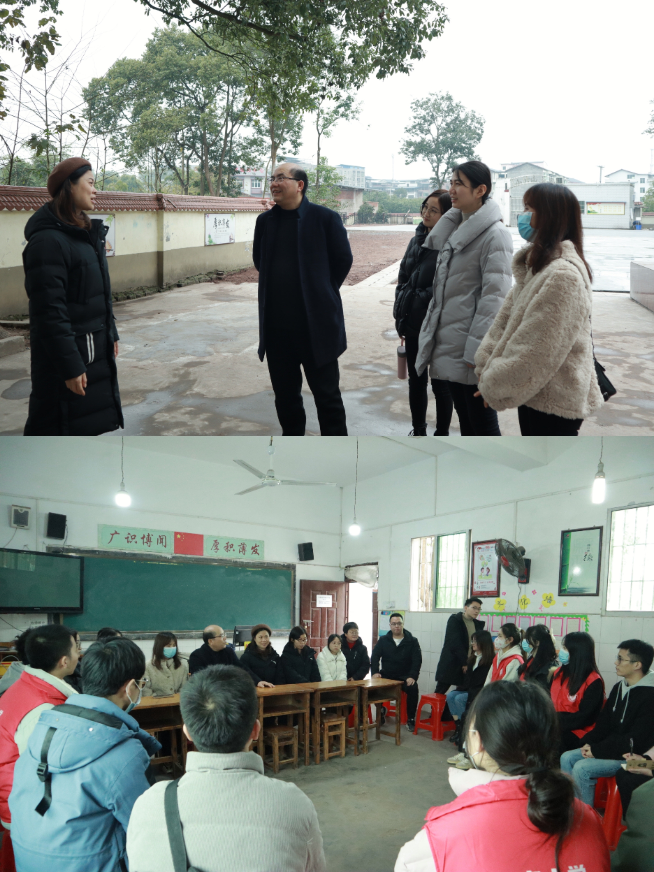 2022年1月12日,PA视讯集团党委副书记、纪委书记黄庆洲、团委书记刘晓兰、研究生辅导员李林园、吴秋云带领由14名研究生组成的朱沱镇五龙山村小志愿服务队抵达重庆市永川区朱沱镇五龙山村小。