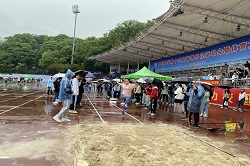 学生赛事竞争激烈,教职工比赛同样进行得热火朝天,我院老师们斗志昂扬、奋力拼搏,最终获得团体总分第五名的好成绩。教工团体赛方面,在男女混合滚铁环接力中获得第三名;在男女混合螃蟹跑中获得第四名;在男女混合毛毛虫接力中获得第五名;在男女混合篮球运球上篮中获得第八名;在男女混合足球射门中获得第八名;教工个人赛方面,黄兰香老师斩获乙组女子100米与乙组女子400米金牌;徐玉薇老师获得甲组女子跳远第六名;
