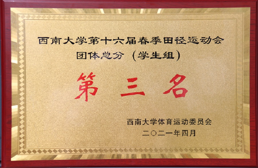 我院在此次赛事中硕果累累,最终获得团体总分第三名的好成绩。学生团体赛方面,在女子4*100米接力赛中获得银牌;在男子4*400米接力赛中获得第五名;在女子4*400米接力赛中获得第六名;在跳长绳比赛中获得第五名。学生个人赛方面,肖智天斩获男子三级跳金牌与男子跳远铜牌;吕红、杨苑、邹凌姿分获女子三级跳第二名、第五名、第八名;李毕成、左宗韬分别获得男子跳高第三名、第六名;梅芹、冉进蓉分别获得女子1500米第三名、第七名;熊思雨取得女子100米第四名与女子200米第五名;冉进蓉取得女子800米第五名;吕红取得女子跳高第六名。