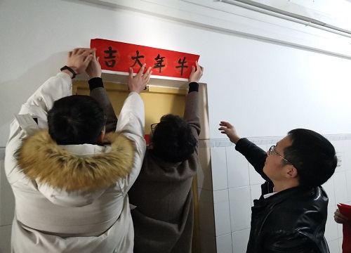 随后,学院党政领导参观了部分留校学生宿舍,并和学生一起贴春联,为即将到来的新春佳节增添了浓厚的喜庆氛围。