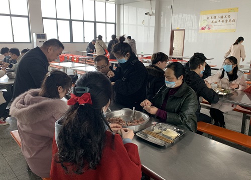 中午的餐桌上除了热气腾腾的饺子外,还有丰盛的饭菜,大家围坐在一起把酒畅欢,阔谈新愿。午饭期间,党政领导给同学们发了新年慰问红包。留校学生激动地说,在没有家人陪伴的异地他乡,和老师们同学们过这样的春节,兴奋不已。