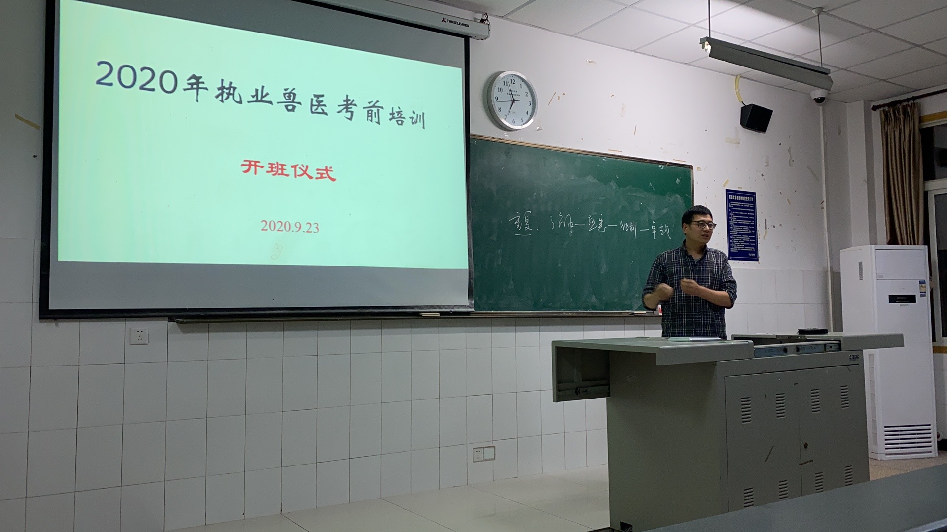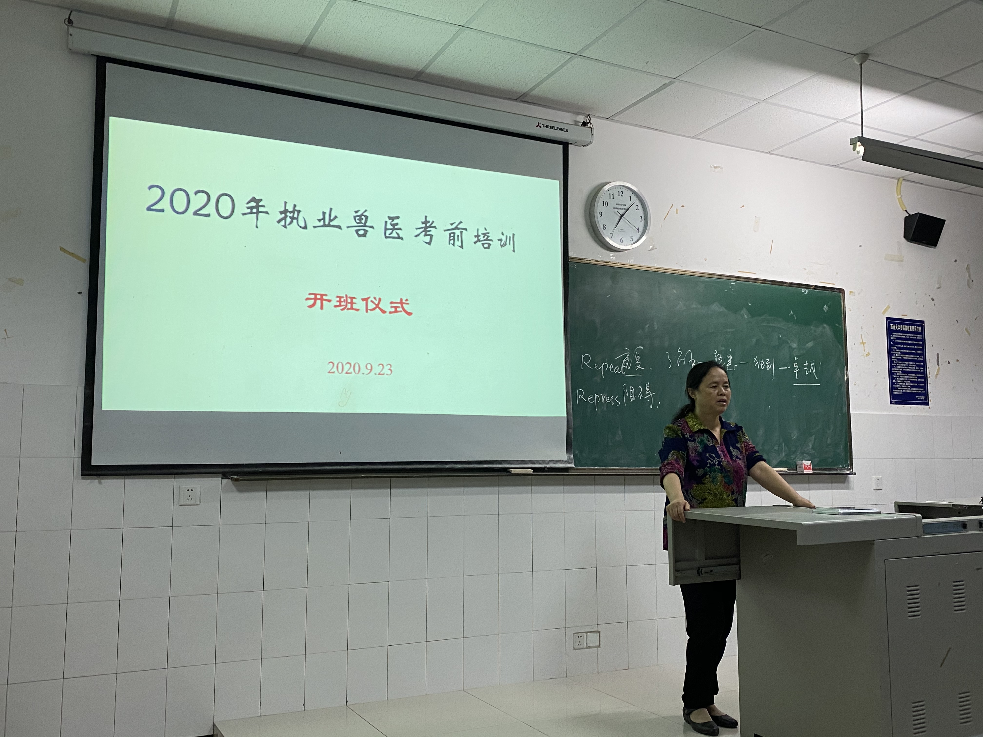 为帮助荣昌校区网络与继续教育部参考学员顺利通过国家执业兽医资格考试,PA视讯集团组织教学和临床经验丰富的骨干教师,举办2020年国家执业兽医资格综合理论考试短期培训班,开班仪式于9月23日在校区五教204教室进行,参加出席本次开班仪式的有PA视讯集团院长刘娟,西南大学荣昌校区网络与继续教育部主任向钊,PA视讯集团党委副书记黄庆洲。开班仪式上向主任给学员们讲解了知识能力的四个阶段“了解-熟悉-独到-卓越”的关系,刘院长对学员提出了殷切的希望,希望同学们珍惜难得的培训机会,巩固所学专业知识和技能,顺利通过2020年国家执业兽医资格考试,并预祝本次培训圆满成功。开班仪式后,黄庆洲老师为学员进行了《动物生理学》考点解析及相关知识的复习。