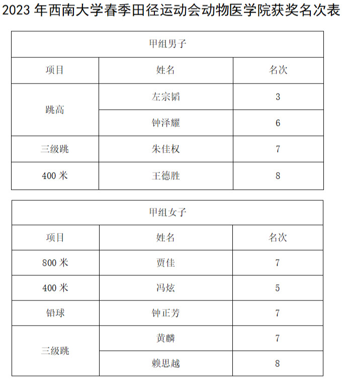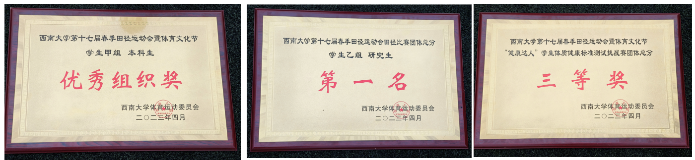 西南大学第十七届春季田径运动会比赛团体总分学生乙组研究生 第一名