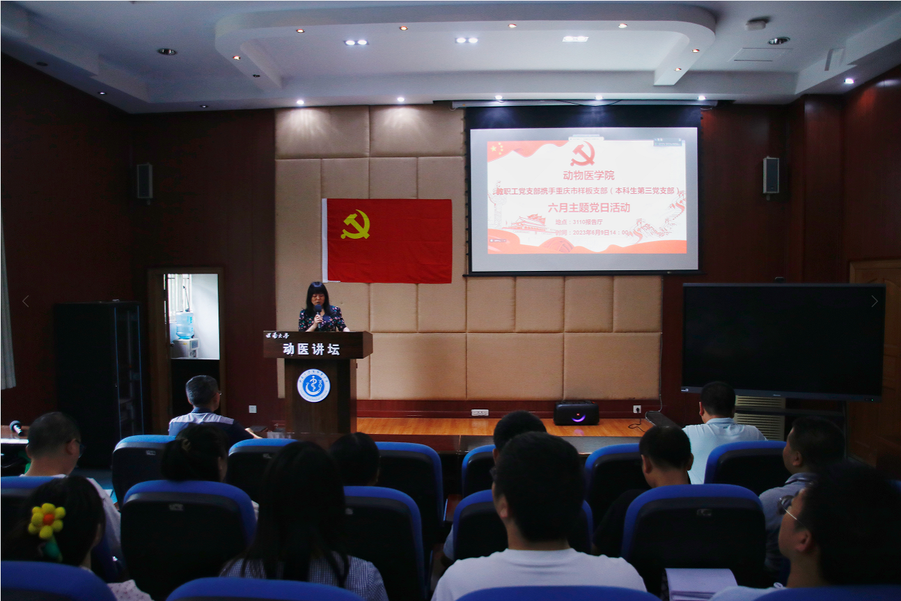 为深入开展学习贯彻习近平新时代中国特色社会主义思想主题教育,丰富主题党日活动内容和形式,提升主题党日活动质量,在学院党委书记黄昌建同志的关心与指导下,2023年6月10日下午2:00,PA视讯集团教工支部携手重庆市样板支部—PA视讯集团本科生第三党支部,在荣昌3110会议室和北碚动物医院210会议室线上线下集中开展了“以学正风、党建育人”主题党日活动,活动由王芝英同志主持。