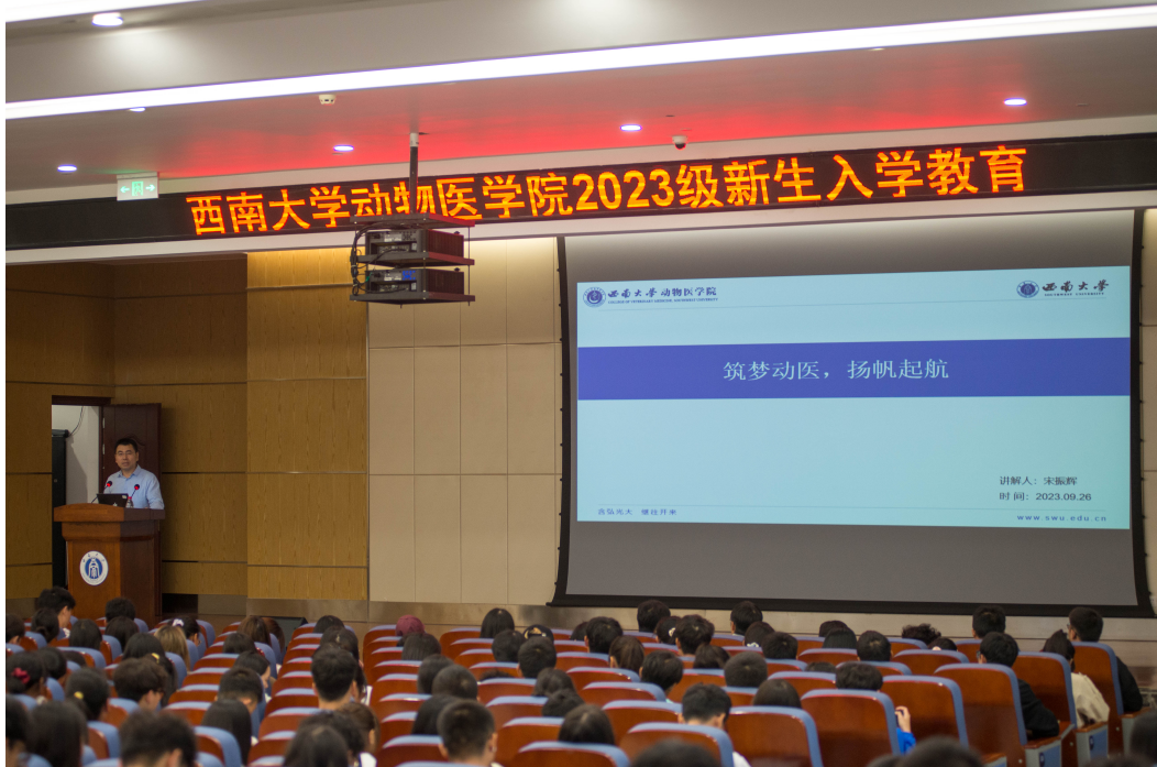 9月26日上午,学院副院长宋振辉结合学科专业特色与本科生培养特点,从学院现状、人才培养目标、人才培养特色、优秀校友风采展示等方面进行了教学院长面对面主题讲座,促进了新生对学院文化与专业发展的深入了解。随后,为进一步开拓学生的国际视野,提高同学们创新意识和实践能力,学院特邀请国际处老师开展了国际教育主题宣讲活动,帮助学生了解学校关于出国留学的相关政策,希望同学们积极利用学校推出的出国项目,加入到国际交流的行列中去。最后,中兽医学系主任曹立亭、动物药学系主任魏述永、动物医学系主任王鲜忠依次就专业何为、课程设置与特色、专业认同、师资力量、人才培养等方面进行详细讲解,以期帮助新生建立学科专业认识与个人发展规划,从而养成良好的学习习惯,潜心学习专业知识,树立正确的专业观念。下午,新生听取了“以青春之名传承历史 执青春之笔书写未来”为主题的“开学第一课”专题讲座,引导初入大学的青年学子们感悟校史底蕴,厚植家国情怀,砥砺强国志向。