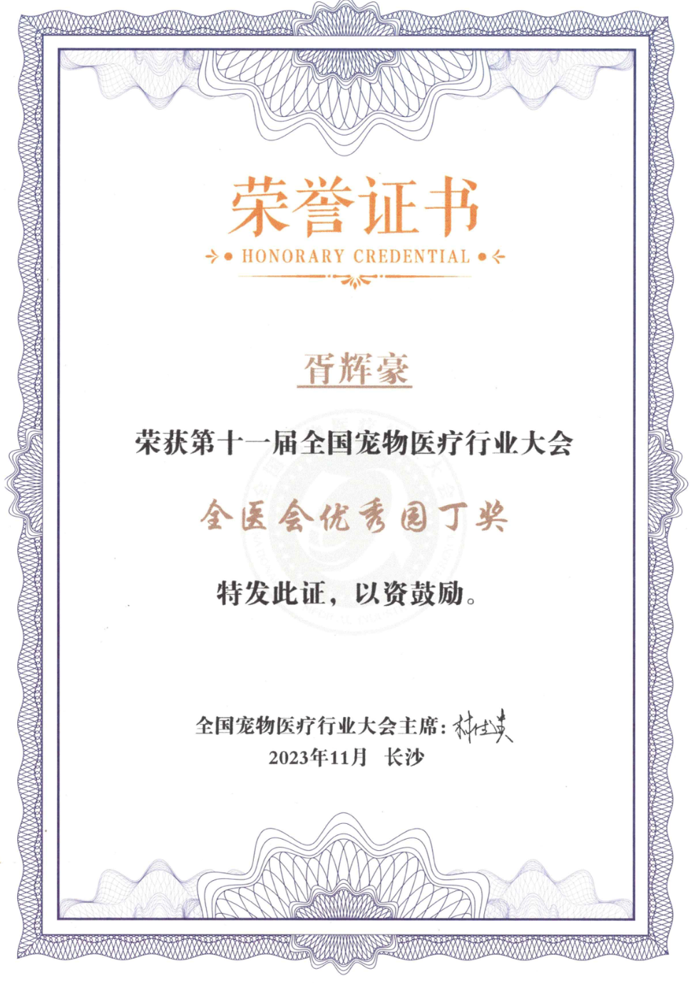本次大会以“技术进步·推动行业发展”为主题,旨在强调小动物医学技术的重要性,聚焦行业人才,推动动物医学的创新与发展,夯实人才培养体系。本次大会围绕相关主题开设了50余个讲座,同时举办了兽医职业教育论坛以及异宠论坛,全国专家与临床大咖们共同交流小动物诊疗行业发展经验,探讨发展前景。胥辉豪副教授在本次大会中进行了“犬猫眼表修补与移植技术分析”的专题报告,并获得“全医会优秀园丁奖”表彰,同时在大会现场对主译的经典专著《小动物眼科学案例快速回顾手册》进行了推介。