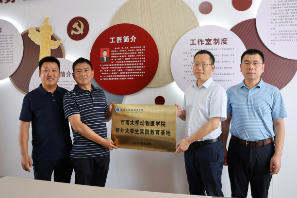 为进一步推进学校实践育人工作和劳动教育工作,提升学生综合实践能力,实现知行合一、全面发展,5月23日上午,学院党委书记黄昌建、副院长宋振辉赴江津与重庆腾驰食品有限公司进行大学生校外实践合作交流暨授牌仪式。重庆市农业农村委兽医处杜成才处长,重庆市农业综合行政执法总队高级主办(原副总队长)刘茂文,重庆市江津区畜牧兽医发展中心主任陈华良,重庆市江津区珞璜镇人民政府副镇长钟渝、重庆市江津区珞璜镇农业服务中心副主任钟六勇出席授牌仪式。