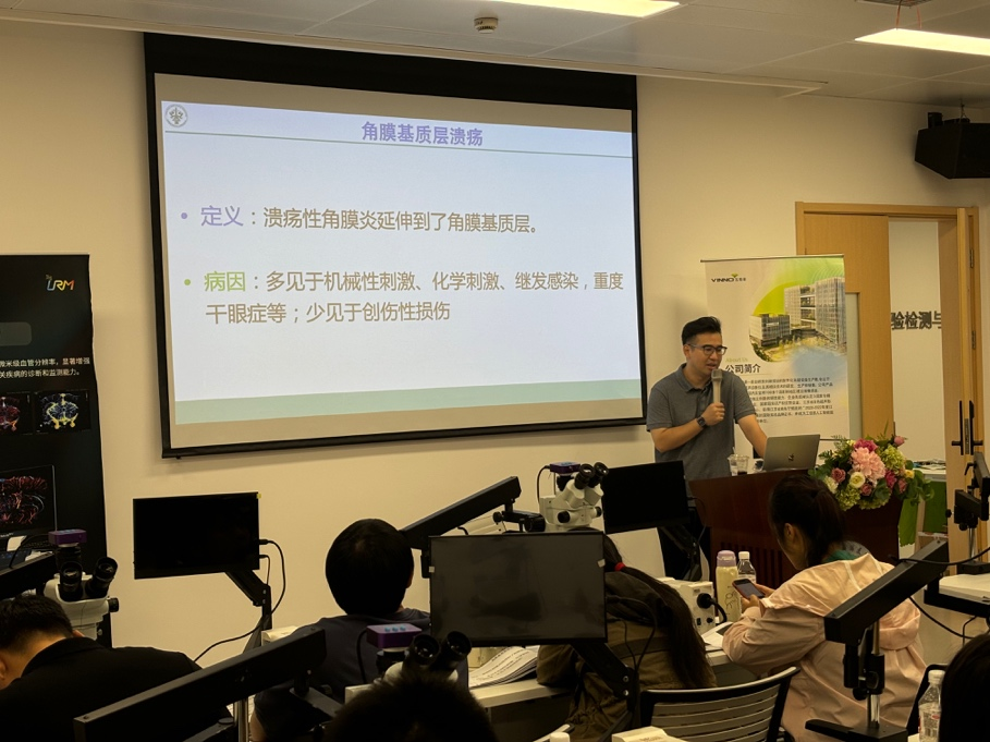 胥辉豪作为中国畜牧兽医学会小动物医学分会眼科专家组组长,同时也是中国兽医协会首批获得认证的兽医眼科专科医师。本次培训吸引了来自全国各省市300余名临床工作者的踊跃报名。胥辉豪主要进行了小动物角膜疾病及显微手术技术的专题培训。胥辉豪首先介绍了我国兽医眼科专科的现状与发展,对常见角膜疾病的理论知识进行了详细的讲解,现场指导了眼科基础临床检查与显微镜下缝合技术,并在整个培训过程中与学员们进行了广泛的互动与交流。