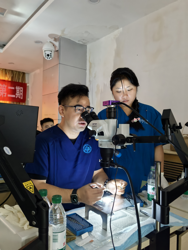 本次培训吸引了来自全国100余名临床工作者的踊跃报名。胥辉豪进行了小动物角膜疾病、显微手术技术以及眼部超声的专题培训,讲授了常见角膜疾病的理论知识,现场指导了学员显微镜外科缝合、眼部超声等技术实际操作,并在整个培训过程中与学员们开展了广泛的互动与交流。
