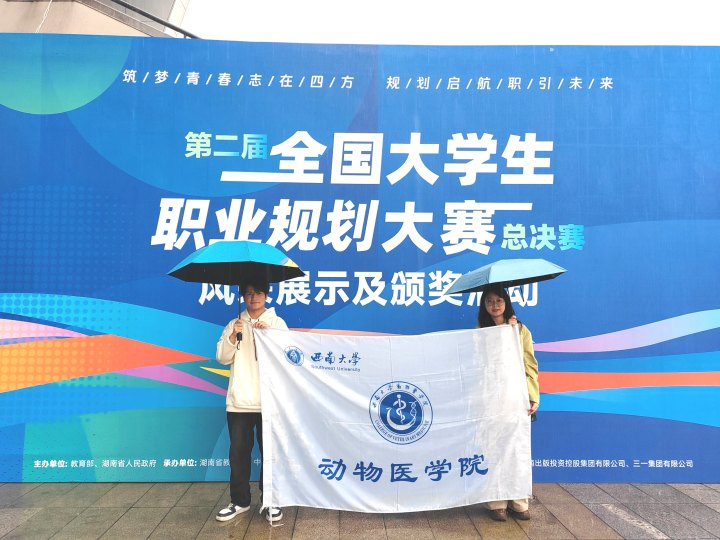 2025年4月16日至19日,由西南大学学生职业发展与就业服务中心主任带队,在学院指导教师陪同下,2021级动物医学专业学生胡惠铭代表重庆市参加职规赛国赛,在就业赛道高教本科生第二组中与全国30名优秀选手同场竞技。他的职业目标为兽药研发工程师(生物制品方向),聚焦兽药生物制品的研发与应用,从职业定位、岗位胜任力、职业计划等角度进行系统阐述,其出色的表现获得专家评委一致好评,充分展现了我院学子的综合实力与创新能力,并最终斩获国赛银奖。
