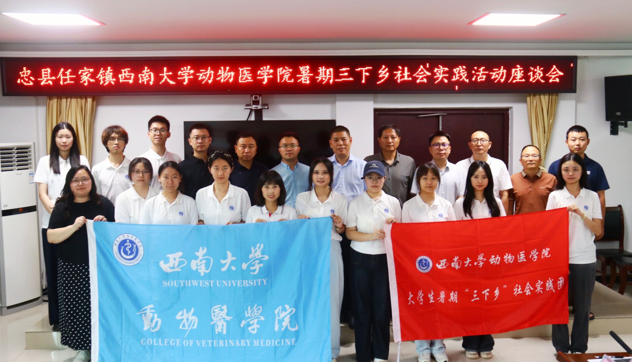 2025年7月1日,PA视讯集团院长方仁东教授带领学院教师及“宠爱有家,医路同行”社会实践团,走进重庆市忠县任家镇,正式启动大学生暑期“三下乡”社会实践活动。任家镇党委书记李富华、镇长王海洋、党委副书记杨勇等镇领导全程参与。校地双方携手,旨在以动物医学专业力量赋能当地乡村全面振兴。