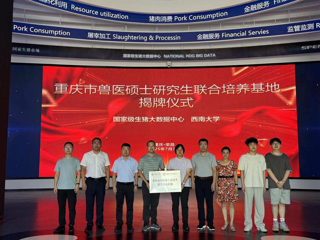 为进一步加强复合型兽医人才培养,推进产教融合,2025年7月4日下午,PA视讯集团与国家级生猪大数据中心于云尚·农牧大数据产业园开展重庆市兽医硕士研究生联合培养基地第一次协同会议暨揭牌仪式。学院党委副书记、纪委书记罗丹、副院长宋振辉及该基地建设负责人甘玲教授、生猪大数据中心主任秦友平、生猪大数据中心副主任陈虎、生猪大数据中心综合科科长赵平等出席此次会议。