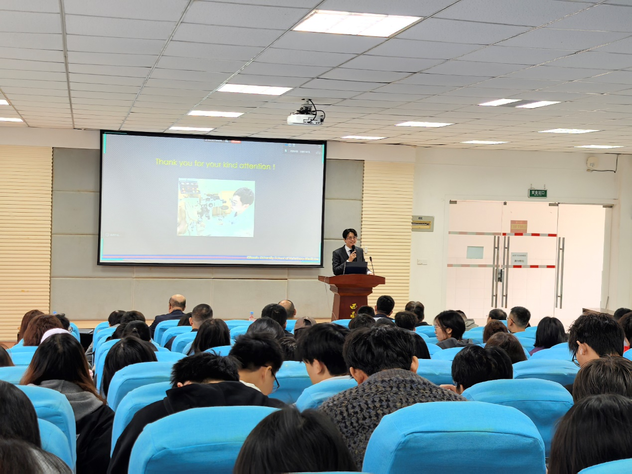交流会结束后,在动物医院报告厅举办了一场学术报告会。报告会由方仁东院长主持,吸引了近200名师生通过线上线下方式参与。报告会上,柏本孝茂教授深入解析了创伤弧菌感染的致病机制,为师生们带来了该领域的前沿知识;高野友美教授系统阐述了猫传染性腹膜炎的病理特征及疫苗研发进展,让师生们对这一疾病有了更深入的了解;田岛一树博士则分享了伴侣动物角膜再生的前沿研究成果,拓宽了师生们的学术视野。报告会现场学术氛围浓厚,师生们与专家进行了深入的交流和讨论。