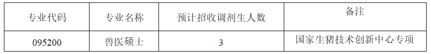因学科发展需要,学校新增国家生猪技术创新中心专项指标,同时根据《关于印发<西南大2023年硕士研究生招生调剂工作办法>的通知》(西研招〔2023〕4号)文件精神,结合学院实际情况,现将学院2023年专项计划硕士研究生招生调剂工作方案安排如下: