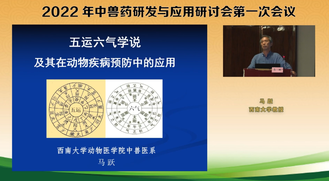 马跃教授以“五运六气学说及其在动物疾病预防中的应用”为题进行了大会报告。马跃教授从中药防病的思路出发,介绍了五运六气学说的重要性,然后深入讲解了五运推算、六气推算、运气相合推测不同年份外感病因的方法和步骤,最后重点提出了基于运气推算的防病纲领和驱邪扶正法则。马跃教授的报告理论精深,临床指导意义重大,获得了与会同仁的一致好评。