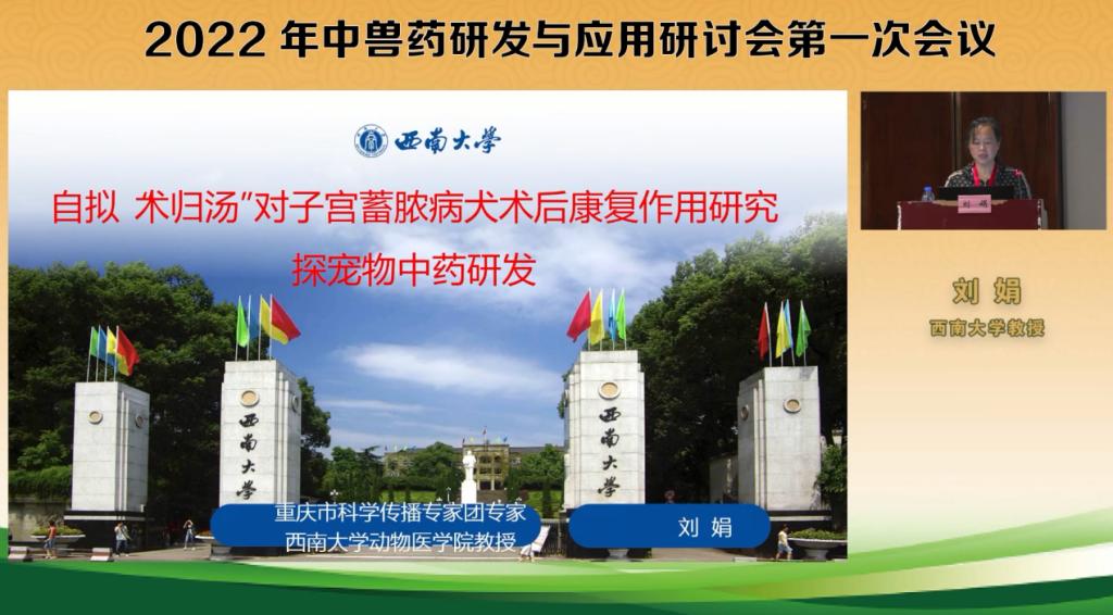 刘娟教授以“术归汤对子宫蓄脓病犬术后康复作用及机理探究探宠物中医研发”为题进行了大会报告。刘娟教授从宠物子宫蓄脓病的术后康复为着眼点,深入分析了子宫蓄脓病的中兽医辨证和术归汤的病机、方解,并分享了术归汤的临床应用效果的真实病例和术归汤的本动物机理研究结果。刘娟教授的报告紧密联系兽医临床前沿,深入浅出,且角度独特,得到大家一致的赞同。