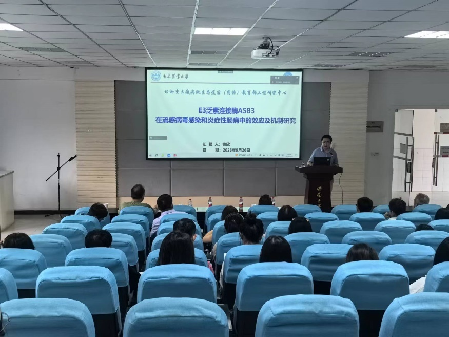 9月26日,吉林农业大学PA视讯集团教授、博士生导师曹欣教授来学院开展学术交流,学术沙龙在98教动物医院报告厅和腾讯会议线上线下方式开展,由学院党委委员、彭远义教授主持,学院王鲜忠、孔庆科、王玉娥等教师、研究生等100余人参加了本次报告会。
